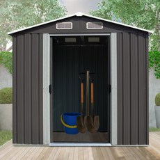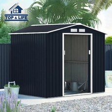 튼튼한 스틸 소재로 제작된 조립식 야외 창고로, 다양한 크기와 타입으로 선택 가능하며 이동이 용이하고 가정이나 정원에서 물품 보관에 적합합니다.